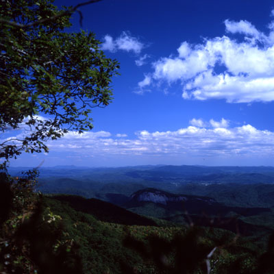 This is the view from a look-out on the side of the Blue Ridge Parkway over the Smokey Montains. The picture is taken some 20 km south of Asheville, North Carolina. The rock formation in the lower center is called Looking Glass Rock (25MPixels) |