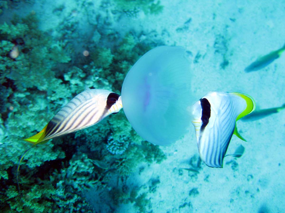 Butterflyfish eating jellyfish